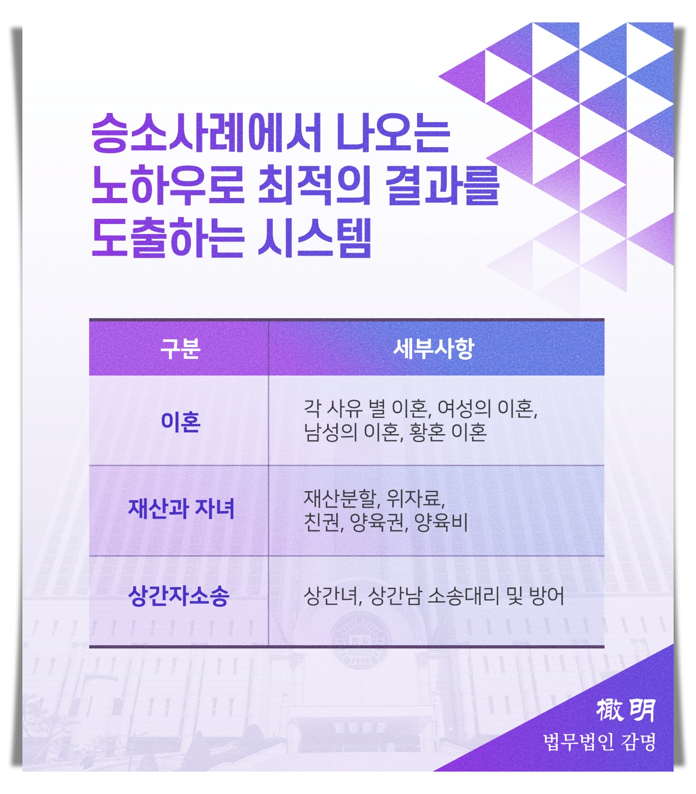 법무법인감명, 이혼전문, 상간녀소송 · 상간남소송 특화, 여성의 이혼, 남성의 이혼,황혼이혼